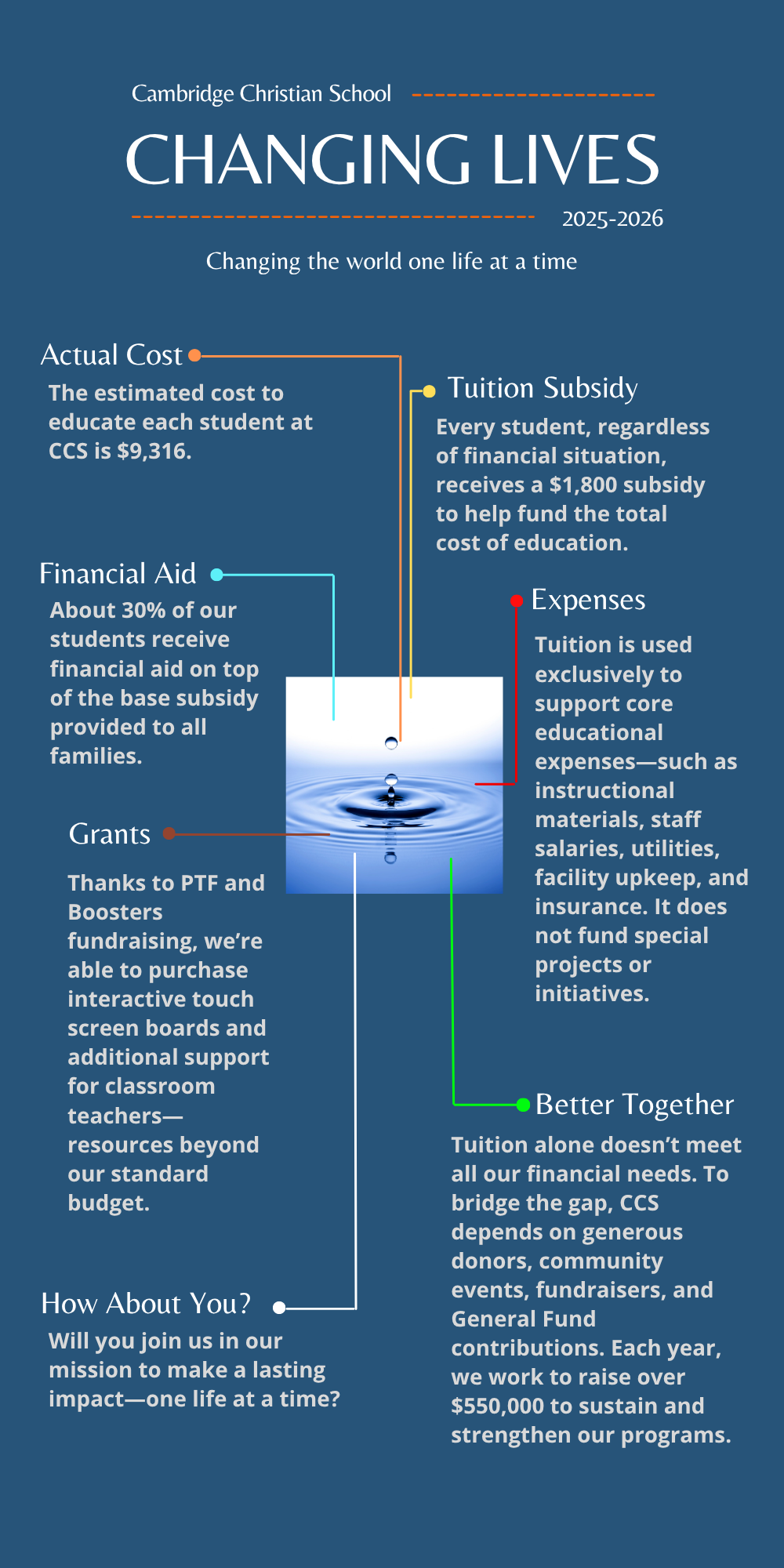 About Us Welcome Mission and Vision History Quick Facts School Board Sponsoring Churches Why Christian Education Academics Curriculum Student Intervention Services Parent Partnership Faculty and Staff ACSI Accreditation Testimonials Employment Admissions Admissions Application International Students Tuition Transportation Student Life Calendar Athletics Athletics Registration MCAC Website Livestream Link Athletic Event Volunteer Signup Warrior Gear! Spiritual Life Student Life Technology Alumni Alumni Impact Keep in touch Community Support Invest How to Support CCS Boosters Business Sponsors Fundraising Parent-Teacher Fellowship Sustained Giving