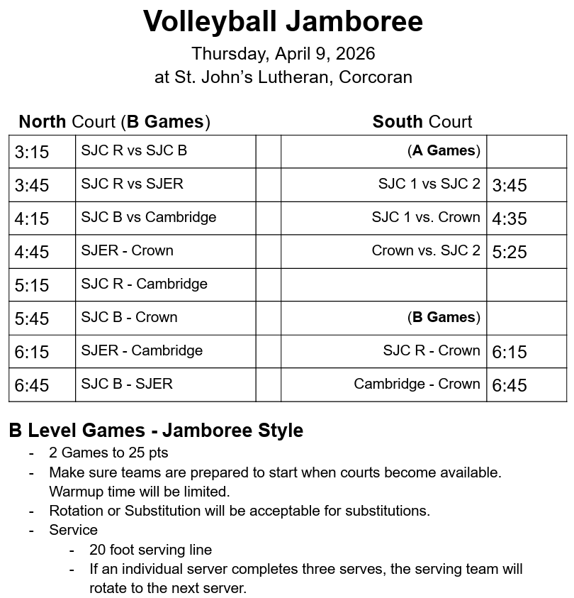 Varsity boys volleyball game (home) vs. Minnetonka Christian